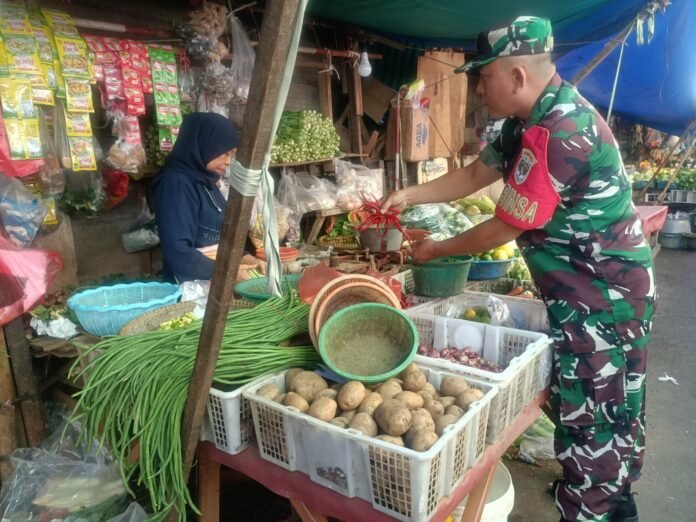 “Kami berharap para pedagang di pasar ini tidak menaikan harga yang tidak sesuai dengan peraturan dari pemerintah agar tidak menimbulkan keresahan di kalangan masyarakat”.Jelas Serda Candra