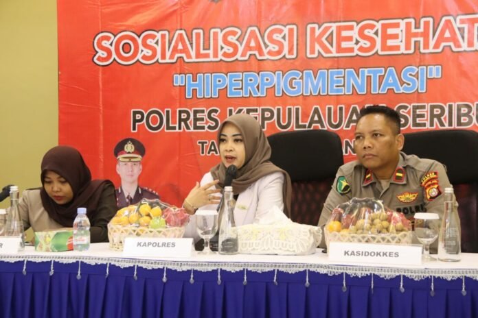 ACTUALNEWS.ID, Jakarta – Bertempat di Aula Serbaguna Wicaksana Laghawa, Sidokkes Polres Kepulauan Seribu bekerjasama dengan Naavagreen menggelar kegiatan sosialisasi kesehatan terkait dengan Hoperpigmentasi yang , Selasa (28/02/2023). Kegiatan ini turut dihadiri oleh Kapolres Kepulauan Seribu AKBP Ary Sudradjat, S.H., S.I.K., M.H.