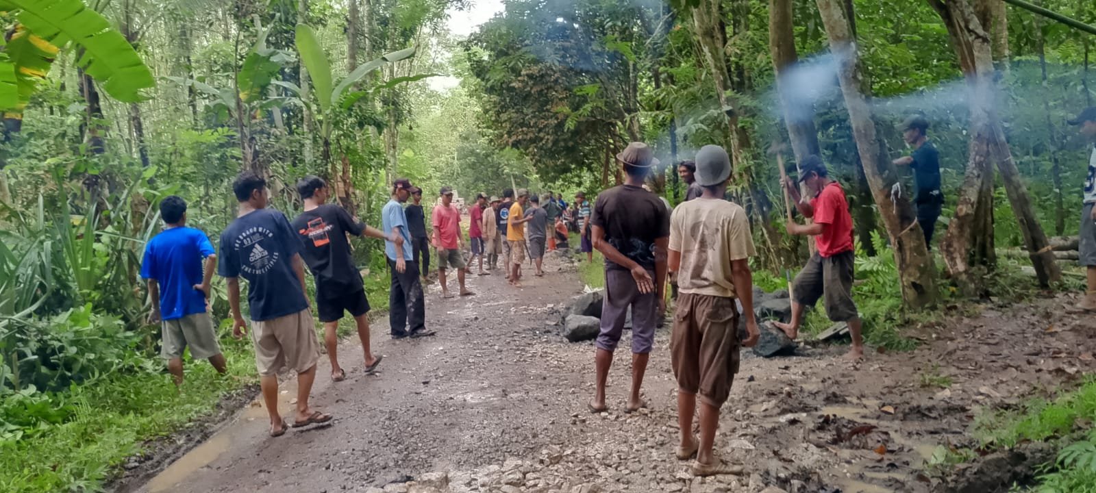 “jadi kami sangat bertanggung jawab untuk melakukan ini dan sesuai kesepakatan hasil musyawarah bersama seluruh Warga,orang tua maupun pemuda,jadi Alhamdulillah pada hari ini kami sepakat memutuskan untuk memperbaiki jalan kompak bergotong royong,Tegasnya .