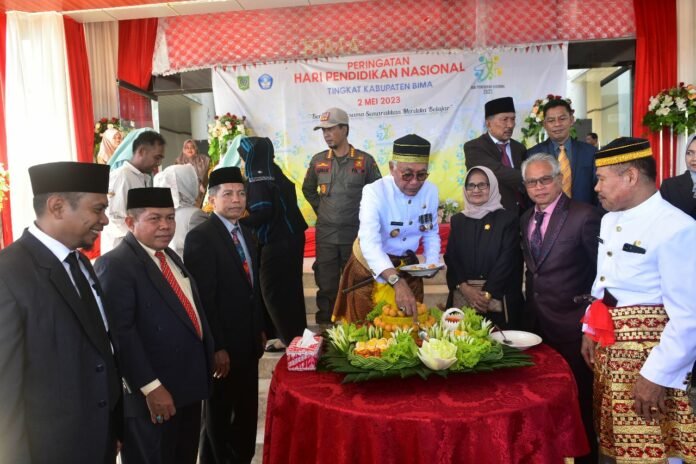 ACTUALNEWS.ID.Bima – Upacara Peringatan Hari Pendidikan Nasional (Hardiknas) yang dirangkaikan dengan HUT Otonomi Daerah XXVII Tingkat kabupaten Bima yang berlangsung Selasa (2/5) di Lapangan Upacara Kantor Bupati Bima dihadiri sejumlah undangan yaitu Pimpinan DPRD, Unsur Forkopimda, Sekretaris Daerah Drs.H.M. Taufik HAK, M.Si, para pejabat Eselon II, Kadis Dikbudpora beserta jajaran, Ketua TP. PKK Kabupaten Bima Hj.Rostiati Dahlan S.Pd, Pimpinan Instansi vertikal, BUMN/BUMD, Kabag Setda, Para Camat dan Kalangan Perguruan tinggi Se-Kabupaten Bima.