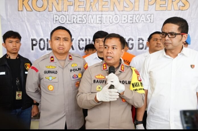ACTUALNEWS.ID, Bekasi – Wakapolres Metro Bekasi AKBP Saufi Salamun memimpin konferensi pers yang berlokasi di Loby Utama Polsek Cikarang Barat untuk mengungkap kasus viral pencurian dengan pemberatan yang terjadi di bawah underpass Jl. Bosih Raya Kelurahan Wanasari, Cibitung, Kabupaten Bekasi. Senin (4/3/2024).