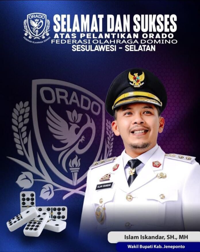 ACTUALNEWS.ID Jeneponto, Kamis 16 April 2026 – Pencapaian Wakil Bupati Jeneponto, , patut mendapatkan apresiasi dari seluruh elemen masyarakat. Pasalnya, beliau kini dipercaya dan terpilih sebagai bagian dari Federasi Olahraga Domino (ORADO) se-Sulawesi Selatan.