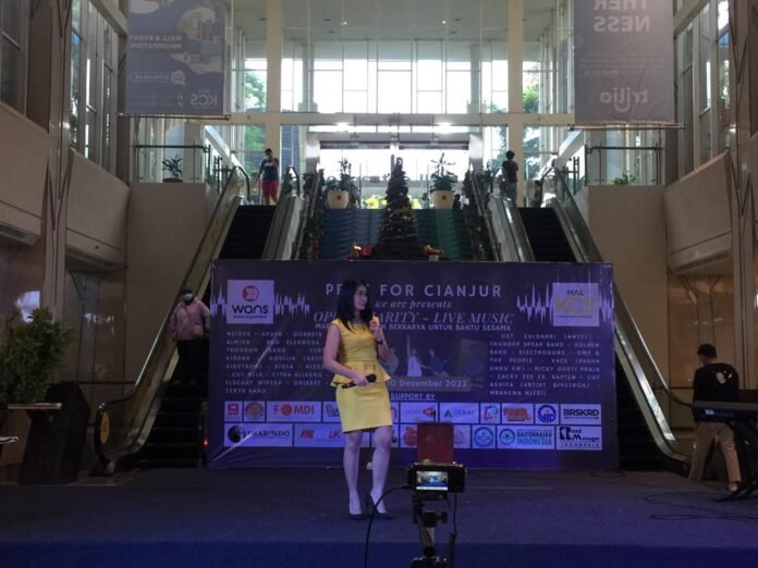 Konser amal yang digelar di Atrium Mall Kalibata City Square ,Jakarta Selatan.Sabtu (11/12). tersebut merupakan langkah cepat untuk segera membantu gempa di Cianjur.