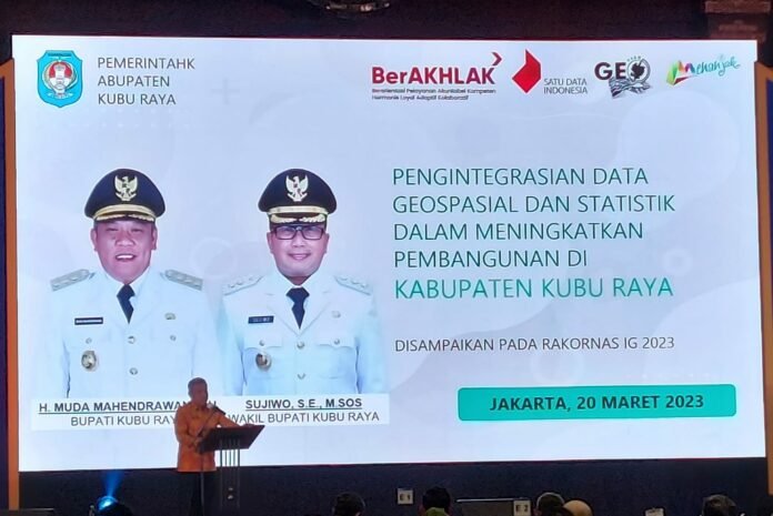 ACTUALNEWS.ID, JAKARTA – Bupati Kabupaten Kubu Raya Muda Mahendrawan terpilih satu diantara beberapa kepala daerah menjadi narasumber di hadapan sejumlah Kementerian, Lembaga Negara dan Pemerintah Provinsi se-Indonesia pada Rapat Koordinasi Nasional Informasi Geospasial (Rakornas IG), bertempat di Hotel Bidakara, Jakarta Selatan, Senin (20/03/2023).