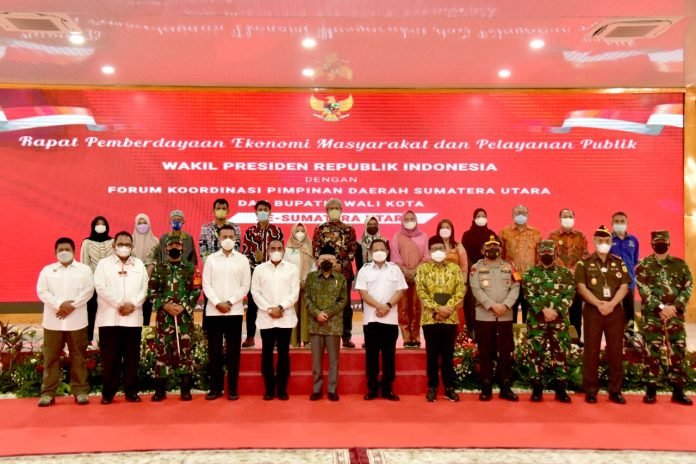 Kunjungan Wakil Presiden di Provinsi Sumatera Utara yang didampingi ibu H.Wury Ma’ruf Amin dan Menteri Dalam Negeri bapak Tito Karnavia, Menteri Desa pembangunan daerah tertinggal dan Transmigrasi bapak A.Halim Iskandar dan rombongan yang dimulai dengan kegiatan penjemputan pada selasa sore yang diterima langsung oleh Gubernur Sumatera Utara dan unsur Forkopimda Sumut dan walikota Medan Bapak Bobby Naution, pada pagi ini Wakil Presiden langsung memimpin rapat terbatas di Aula Tengku Rizal Nurdin kediaman Gubsu dalam rangka membahas pemberdayaan ekonomi masyarakat dan pelayanan publik. Rapat terbatas tersebut dihadiri swluruh Forkopimda, Walikota dan Bupati Se sumatera Utara. Pelaksanaan rapat terbatas sesuai dengan protokoler kesehatan ketat dari Pemda Sumut, Selesai memimpin rapat terbatas tersebut yang juga dihadiri langsung oleh Danlantamal I, rombongan RI 2 beserta Ibu langsung menuju ke Bandara Lanud Soewondo untuk take off kembali ke Jakarta.
