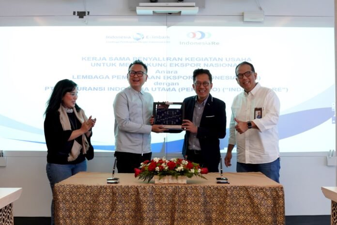 ACTUALNEWS.ID Jakarta – PT Reasuransi Indonesia Utama (Persero) atau Indonesia Re kembali menyelaraskan sinergi antar lembaga milik pemerintah melalui penandatanganan Nota Kesepahaman dengan Lembaga Pembiayaan Ekspor Indonesia (LPEI) atau Indonesia Eximbank dalam hal penyaluran kegiatan usaha untuk mendukung ekspor nasional.