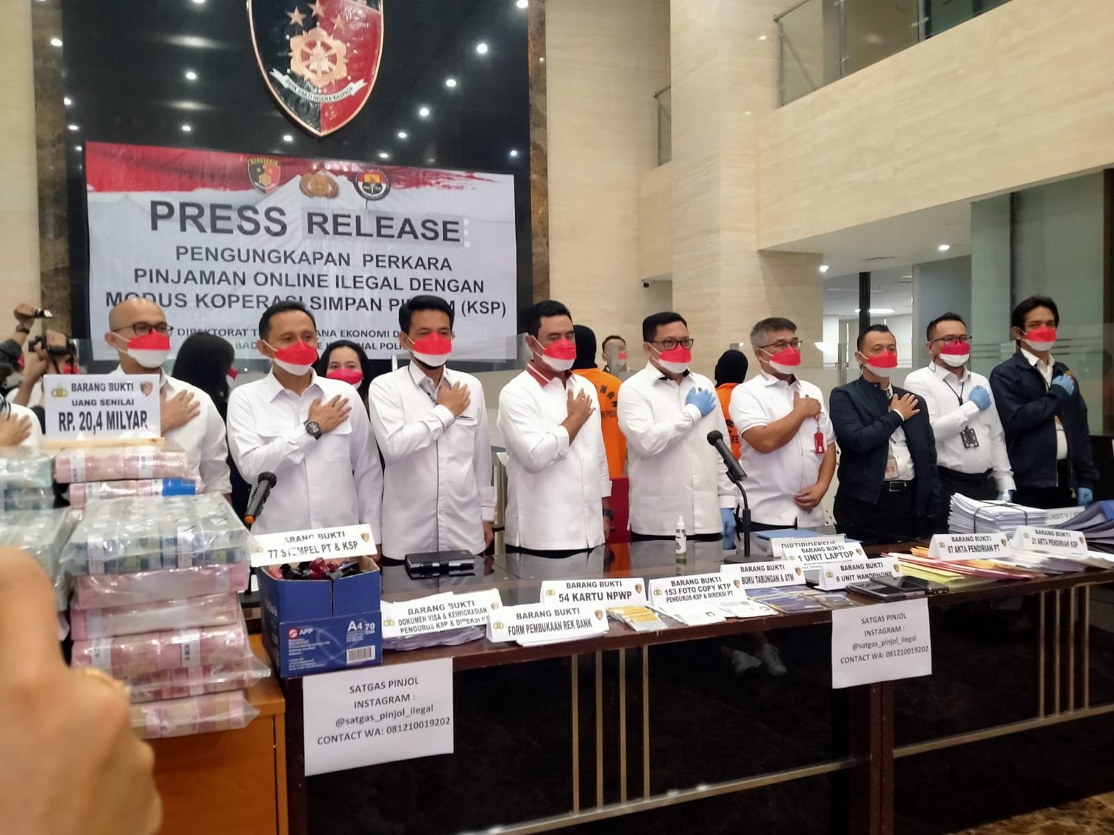 Karopenmas Mabes Polri Brigjen .Pol. Rusdi Hatono Menjelaskan: dalam hal ini berskrim polri dan direktorat tindak pidana ekonomi khusus melakukan konferensi pers yang telah di dapati.