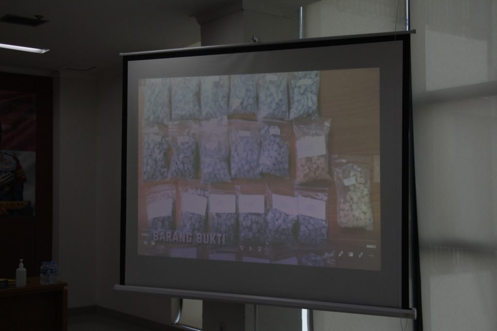 Setyo menuturkan dalam konferensi pers (25/10/21), polisi melakukan penelusuran terhadap tersangka yang telah diamankan sebelumnya dari kasus ekstasi dan ganja, yang kemudian didapatkan pelaku berinisial MR (25), MPR (26), dan YYZ (24).
