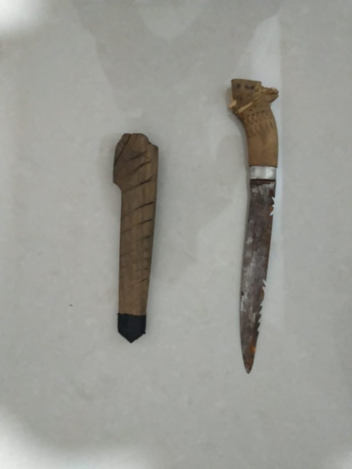 Setelah 2 (dua) hari kemudian pelaku bertemu dengan korban di Jl. B Lagoa dan tiba-tiba marah dengan mengeluarkan senjata tajam jenis badik yang dibawa oleh pelaku dari balik pinggangnya dan dilempar ke samping korban, senjata tajam berhasil diamankan oleh Sdr. MARLAN alias BULE, namun pelaku tiba-tiba memukul korban berkali-kali menggunakan tangan kosong sebelah kanan dan mengenai mata korban sebelah kanan mengakibatkan luka memar dan bengkak serta pandangan korban mengalami gangguan sehingga tidak dapat beraktifitas (tidak bekerja) beberapa hari, kaki kanan dan kiri korban mengalami luka gores akibat terkena batu disaat korban terjatuh saat dipukul oleh AS alias BOE.