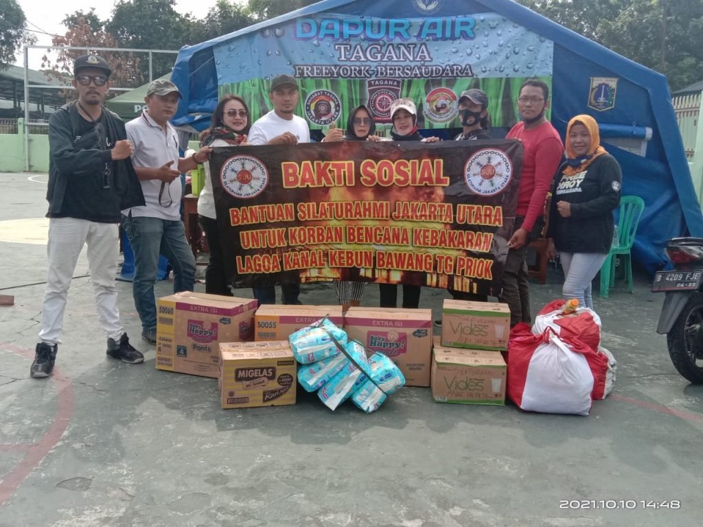 ACTUALNEWS.ID, Jakarta – Bakti sosial Silaturahmi Jakarta Utara (SJU) peduli korban musibah kebakaran yang terjadi di lagoa kanal kebun bawang tanjung priok dengan membagikan perlengkapan mandi pampers dan pakaian layak serta air mineral.Minggu (10/10)