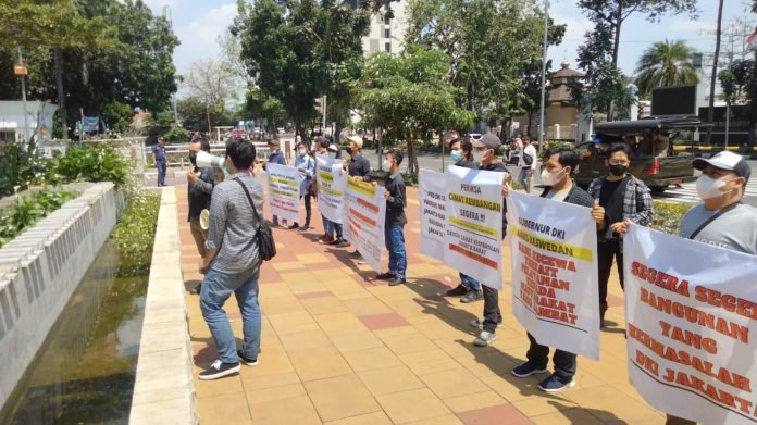 ACTUALNEWS.ID, Jakarta – Sejumlah massa yang tergabung dalam Himpunan Mahasiswa Betawi menggelar aksi terkait bangunan bermasalah dan IMB fiktif, Rabu (22/9/2021).