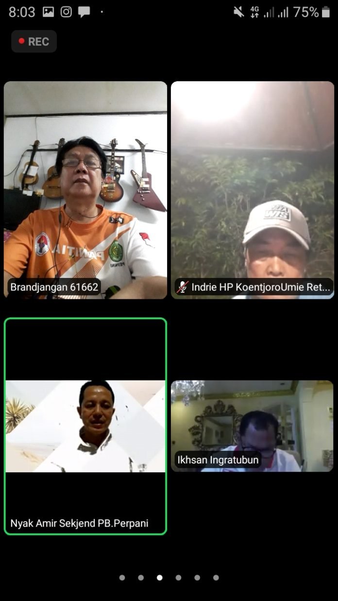 Ketua Umum PB PERPANI Illiza Sa’aduddin Djamal,SE dalam arahannya, mengapresiasi kehadiran pengurus pada rapat yang diselenggarakan melalui zoom meeting tersebut.