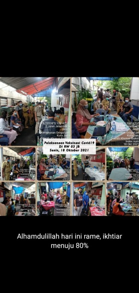 “Secara keseluruhan Kel Jelambar Baru pertanggal 17 Oktober sudah mencapai 79,36% kurang 246 lagi. Dan minggu ini diusahakan akan mecapai 80% sehingga zona hijau terwujud,” tukasnya.