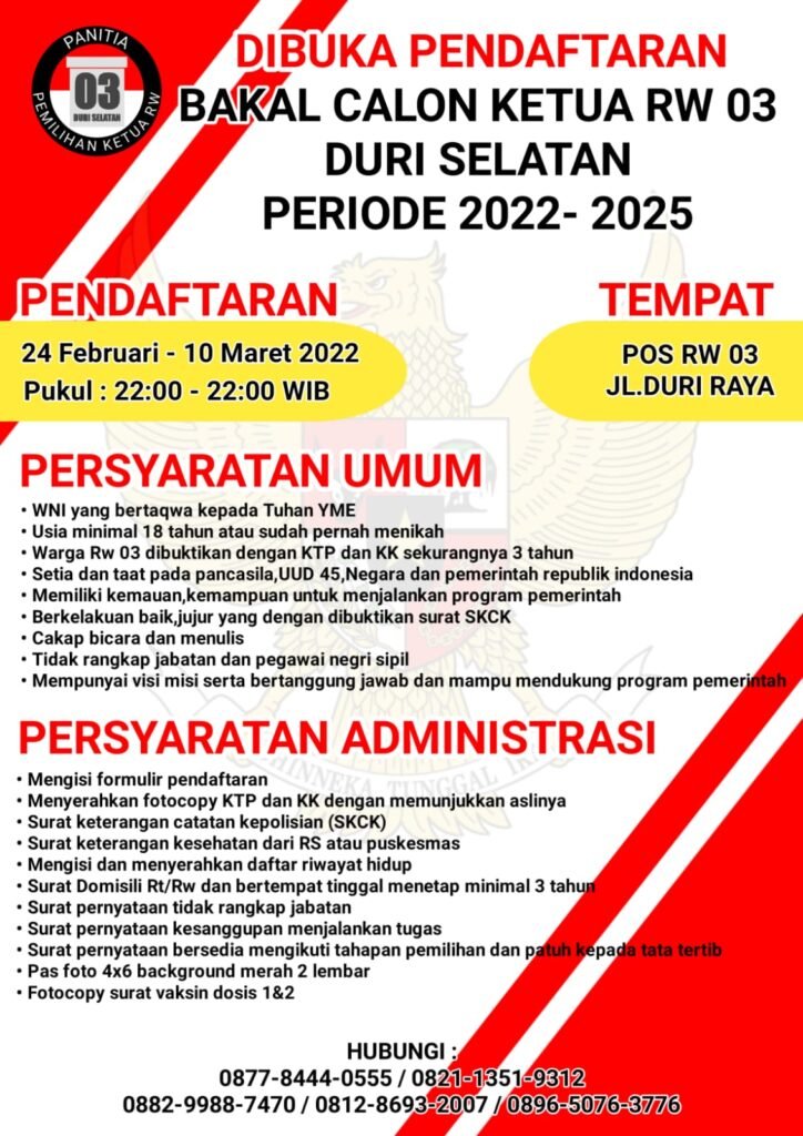 ACTUALNEWS.ID, Jakarta – “Sudah dipastikan pemilihan calon ketua RW 03 Kel Duri Selatan Tambora diikuti 3 calon,” hal ini dikatakan Dirmansyah, Kamis, (17/3/2022) di Kantor Kelurahan.