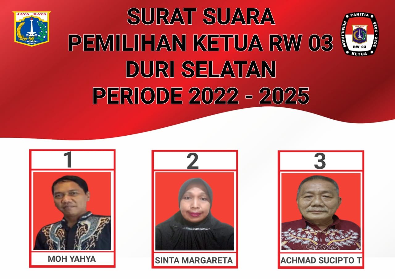 ACTUALNEWS.ID, Jakarta – “Sudah dipastikan pemilihan calon ketua RW 03 Kel Duri Selatan Tambora diikuti 3 calon,” hal ini dikatakan Dirmansyah, Kamis, (17/3/2022) di Kantor Kelurahan.