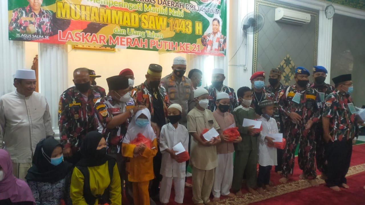 ACTUALNEWS.ID, Jakarta – Ormas LMP ( Laskar Merah Putih ) dihari jadinya ke 21 tahun merayakannya dengan memperingati Maulid Nabi Muhammad SAW dan memberikan santunan dan bingkisan kepada 500 Yatim dan kaum Dhuafa di Masjid At – Taqwa di Pisangan Baru Timur Matraman, Jakarta Timur.