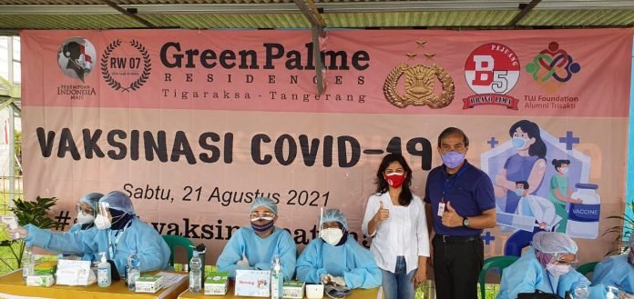 ACTUALNEWS.ID, Tangerang – Sebanyak 500 warga Perumahan Green Palme Residences (GPR), Tigaraksa, Tangerang, sabtu (21/8) menerima vaksin Covid-19 kedua. Program vaksinasi kedua ini terselenggara berkat kerjasama Perempuan Indonesia Maju (PIM), Mabes Polri, Polda Metro Jaya, Perempuan Pejuang Bravo Lima dan TUJ Foundation, dengan melibatkan perangkat desa setempat.