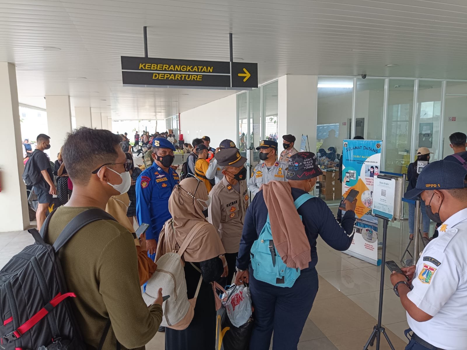 Suratman turut mengimbau kepada seluruh penumpang untuk melakukan scan aplikasi PeduliLindungi terlebih dahulu sebelum masuk ke dermaga dan ditekankan kepada seluruh penumpang untuk menerapkan protokol kesehatan.