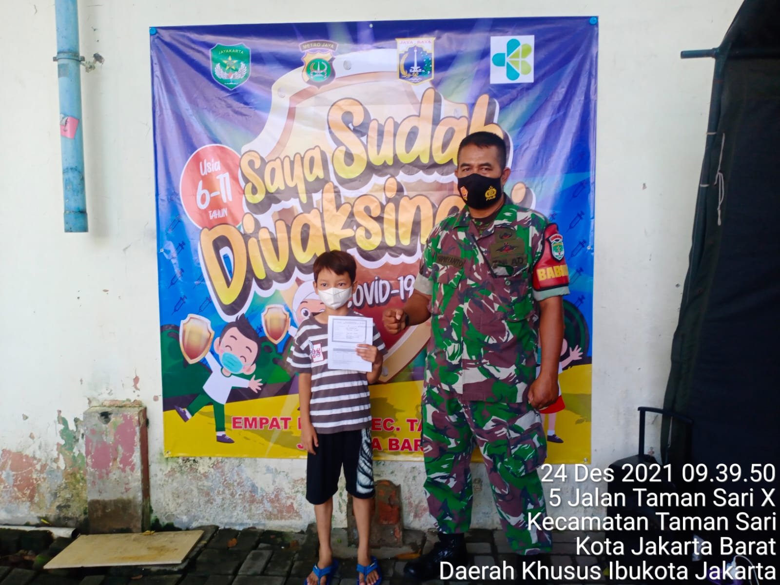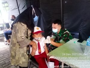ACTUALNEWS.ID, Jakarta Barat – Serbuan vaksinasi Kodim 0503/JB yang di gelar Koramil 01/Tamansari hari ini, Jum’at, 24 Desember 2021 merupakan hari kedua untuk usia 6 hingga 11 tahun yang dilaksanakan di halaman stadion sepak bola Tamansari, Jalan Mangga besar VI Utara, Kel. Tamansari, Kec. Tamansari Kota Adm Jakarta Barat.