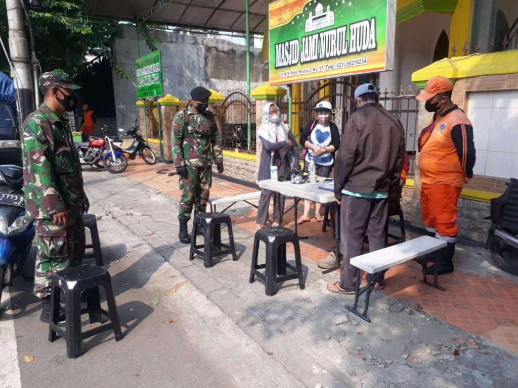 ACTUALNEWS.ID, Jakarta -Guna mencegah penyebaran dan penularan Covid 19 di wilayah Koramil 02/TB, Sertu Sarip H dan BKO Yonkav 9/SDK bersama Polsek Tambora, Pol PP,Dishub dan PPSU Gelar operasi yustisi penegakan disiplin protokol kesehatan.