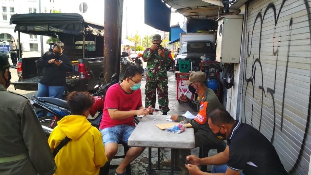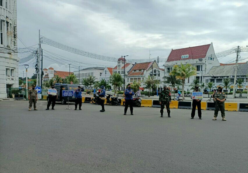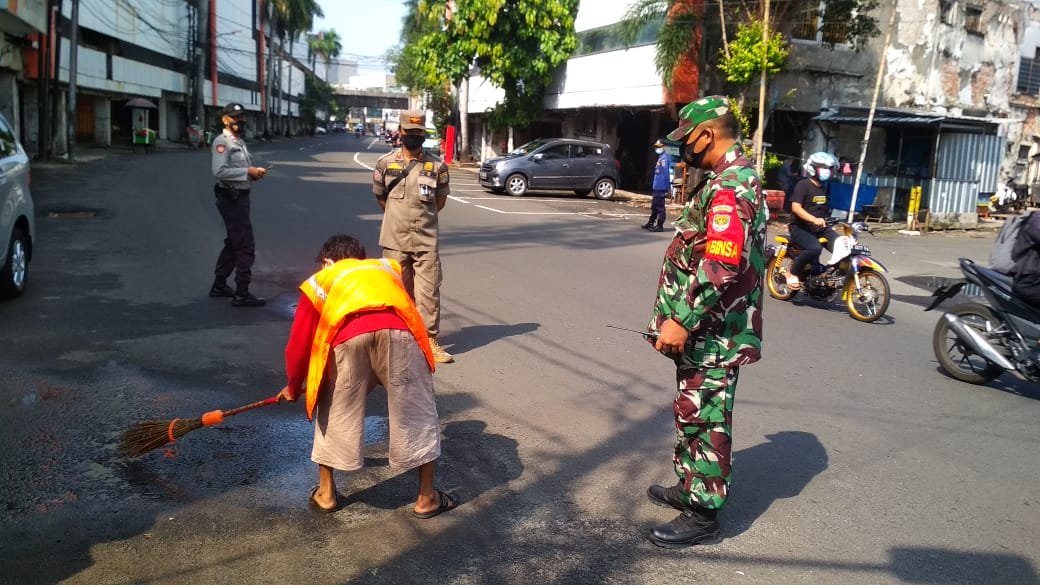 20 Personil gabungan dari Koramil 02/TB Serma Doddy dan Sertu Slamet ST, Polsek Tambora, Satpol PP, Damkar dan Dishub atau di sebut Tiga Pilar menyasar pejalan kaki dan pengendara kendaraan roda dua dan empat yang tidak menggunakan masker.