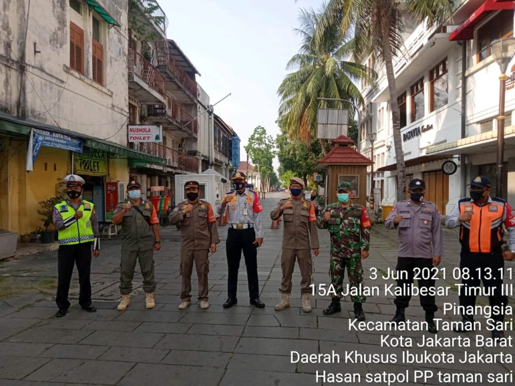 ACTUALNEWS.ID, Jakarta- Hari ini kembali Tiga Pilar Tamansari Menggelar operasi yustisi dalam rangka Penegakan disiplin protokol kesehatan diawali dengan apel kesiapan dipimpin Manpol Kecamatan Tamansari Asmar Panjaitan.