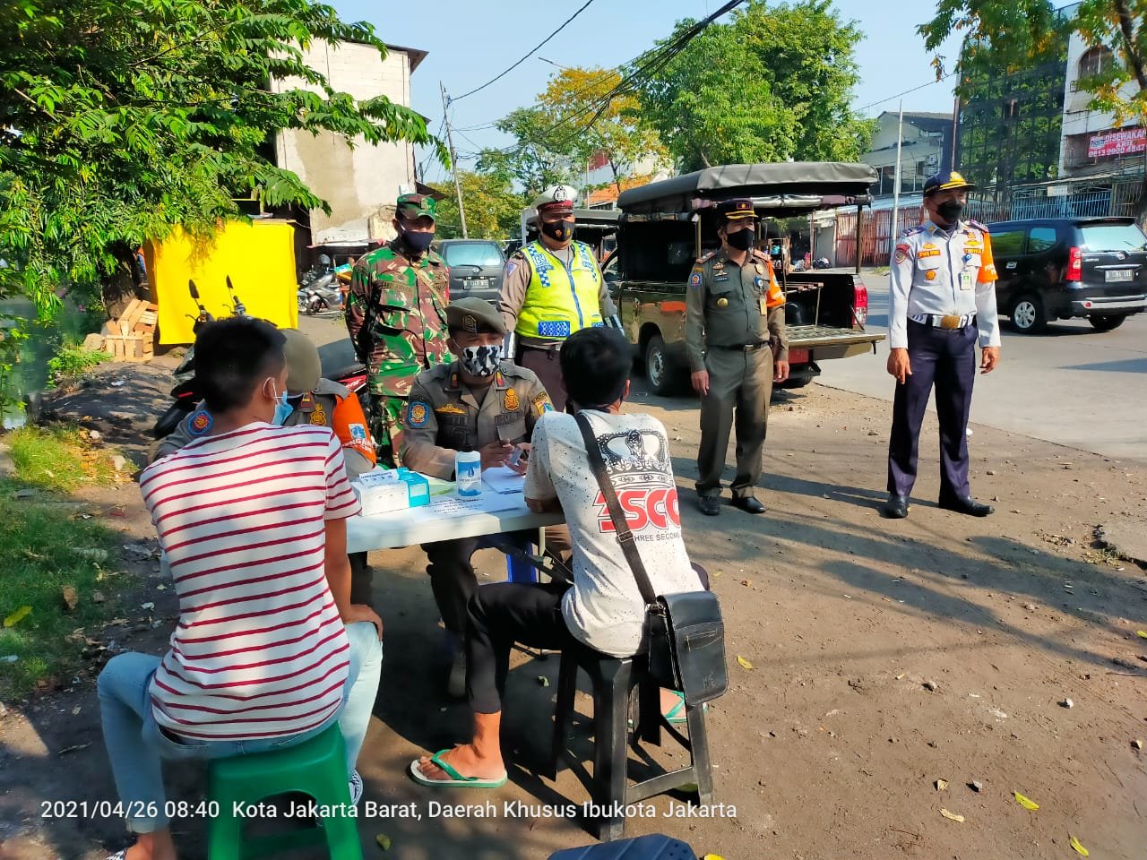 29 personil gabungan dari Koramil 01/TS Serda Abdi Amrizal bersama Polsek Tamansari,Pol PP dan Dishub menyasar Jalan Raya Pangeran Jayakarta Kelurahan Pinangsia Kecamatan Tamansari Jakarta Barat.Senin (26/4).