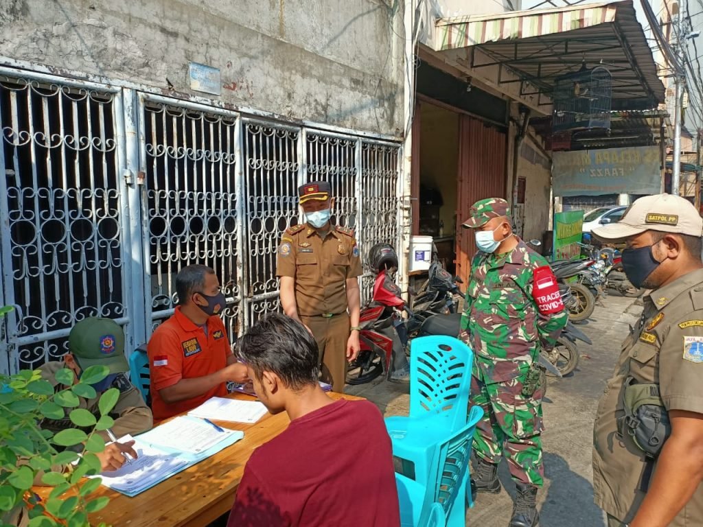 20 personil gabungan dari Koramil 02/TB Serda Apriyanto, Polsek Tambora, Pol PP,Damkar dan Dishub menyasar pejalan kaki dan pengendara kendaraan roda dua dan empat yang tidak menggunakan masker di Jalan Kalianyar I Kelurahan Kalianya Kecamatan Tambora Jakarta Barat.