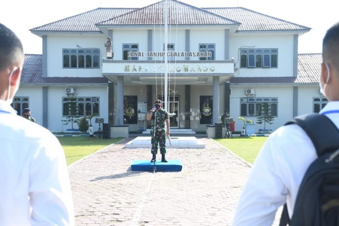 ACTUALNEWS.ID, Tanjung Balai – Komandan Pangkalan TNI AL TBA Letkol Laut (P) Robinson Hendrik Etwiory, berikan pengarahan saat memimpin Apel Khusus pengecekan kesiapan para calon siswa (Casis) Bintara dan Tamtama TNI AL Gelombang 1 TA 2022 Sub Panda Lanal TBA di Lapangan apel Mako Lanal Tanjung Balai Asahan, Kamis (13/01/2022).