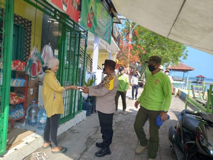 “Personil Polsek Kepulauan Seribu Utara dan Polsek Kepulauan Seribu Selatan bersama instansi terkait membagikan masker saat pelaksanaan patoli jalan kaki di wilayah”, ujar Made.