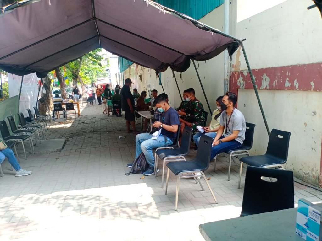 Giat serbuan vaksinasi yang setiap harinya di gelar di Jalan Mangga Besar VI Utara ini dengan Team Tenaga Kesehatan (Nakes) TNI yang di dukung dengan Nakes Puskesmas Tamansari Jakarta Barat.