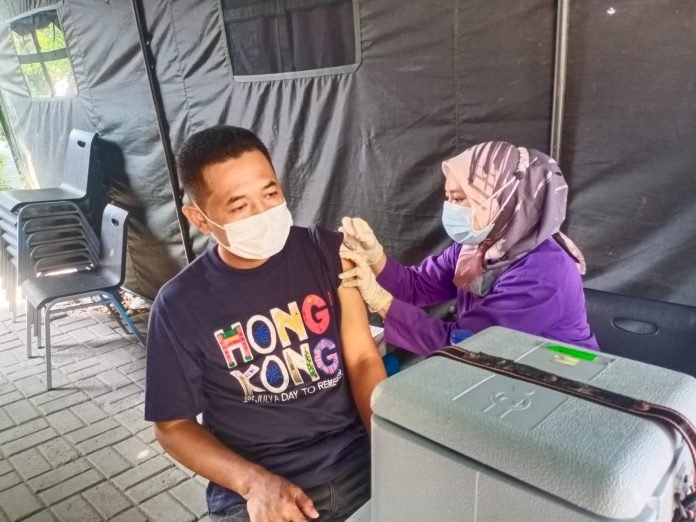 Giat serbuan vaksinasi yang setiap harinya di gelar di Jalan Mangga Besar VI Utara ini dengan Team Tenaga Kesehatan (Nakes) TNI yang di dukung dengan Nakes Puskesmas Tamansari Jakarta Barat.