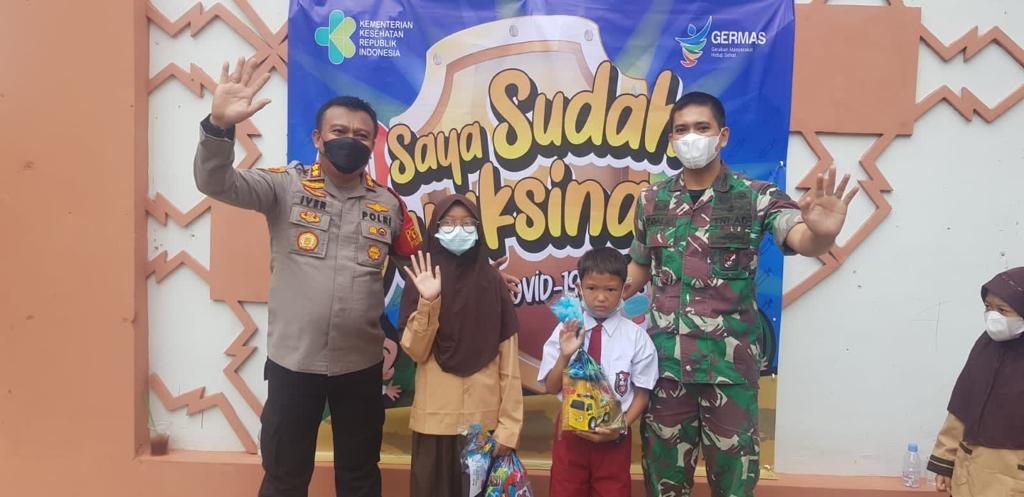 ” Kami menggelar vaksinasi TNI /Polri,untuk anak usia 6 tahun sampai 11 tahun” ucap Kapolsek