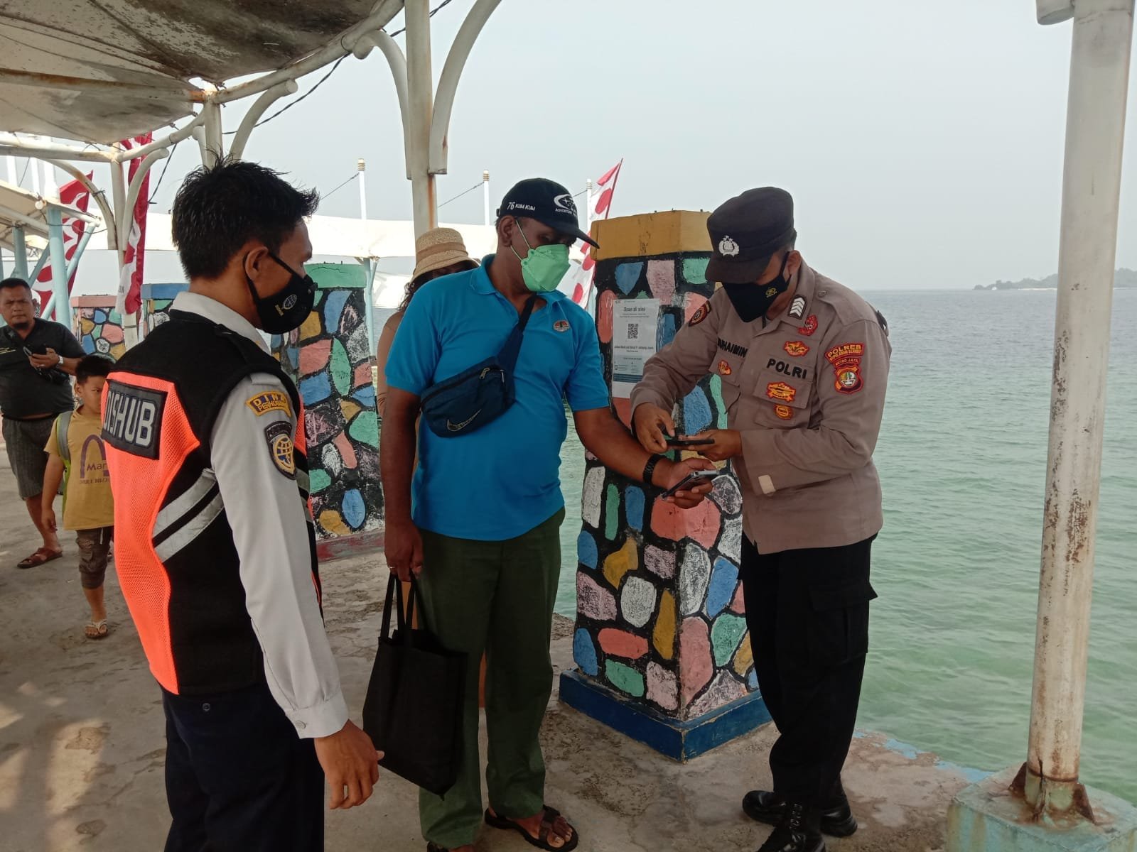 ACTUALNEWS.ID, Jakarta – Polsek Kepulauan Seribu Selatan dan Polsek Kepulauan Seribu Utara setiap hari memperketat prokes di dermaga kedatangan. Begitu pun hari ini, personil pengamanan memberikan layanan kepada 522 penumpang kapal yang tiba di dermaga kedatangan dan diwajibkan untuk scan PeduliLindungi, Senin (29/08/2022).