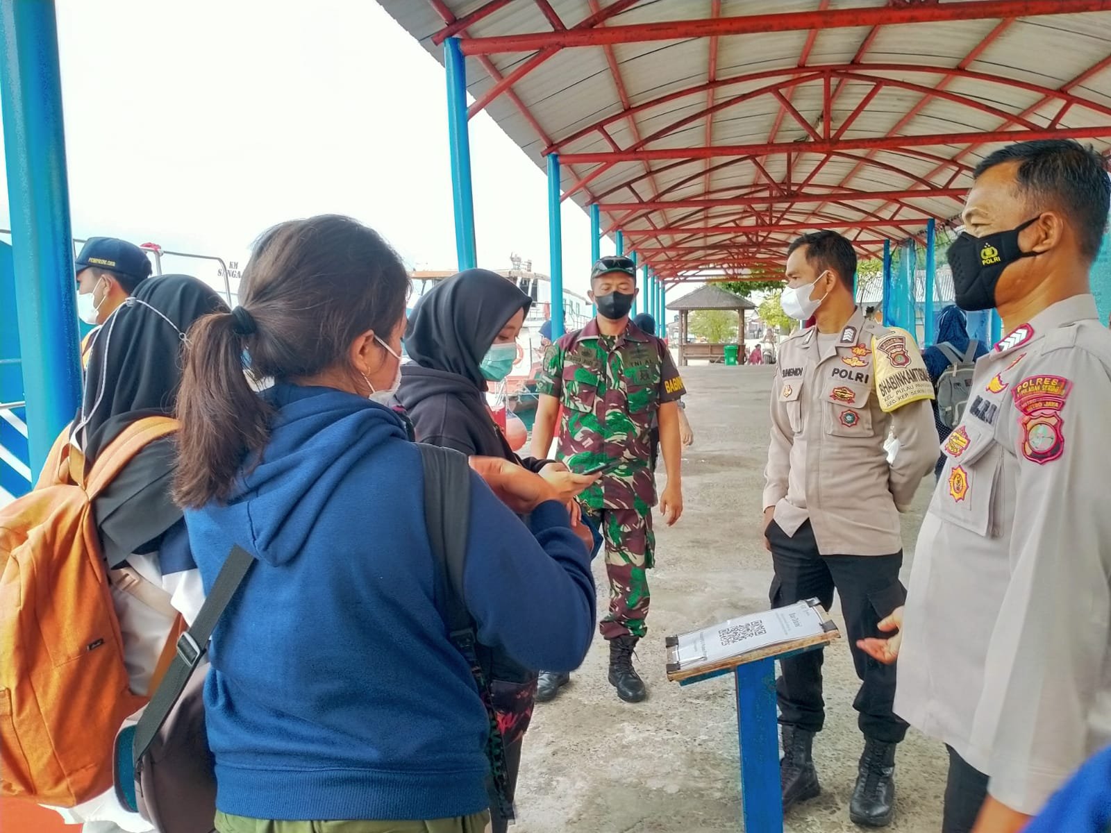 574 Penumpang Kapal Tiba di Dermaga Kedatangan, Petugas PAM Dermaga Cek Hasil Scan PeduliLindungi