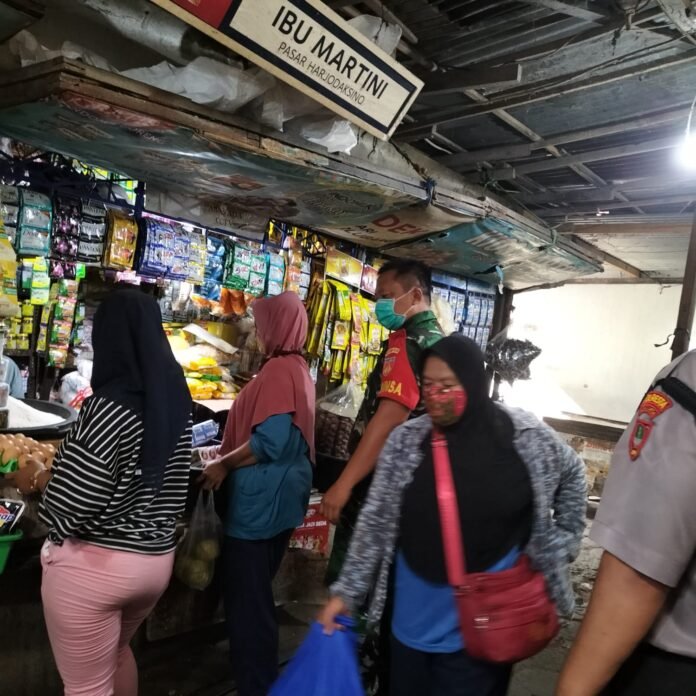 ACTUALNEWS.ID, Surakarta, Babinsa Kelurahan danukusuman Koramil 03/Serengan kodim 0735/Surakarta Sertu Priyanto melaksanakan komsos serta sosialisasi prokes dan perkembangan harga minyak goreng kepada pedagang Pasar hardjodaksino jl.yos Sudarso kel.danukusuman kec.serengan kota Surakarta, Sabtu pukul 08.30 Wib (11/06/2022)