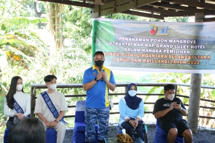 ACTUALNEWS.ID, Manado – Lanud Sam Ratulangi menggelar penanaman pohon Mangrove di sepanjang Pantai Rap-rap Grand Luley Hotel, Manado, Sabtu (12/3/2022). Penanman itu dipimpin langsung Komandan Lanud Sam Ratulangi Marsma TNI Mohamad Satriyo Utomo, S.H.