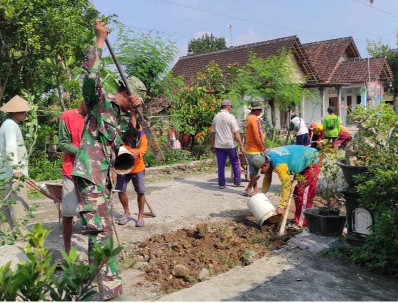 ACTUALNEWS.ID,Sragen, – Dalam upaya mengatasi kesulitan warga desa binaannya, Sertu Mukhamad Purwadi Babinsa Kaliwedi Koramil 06/Gondang Kodim 0725/Sragen melaksanakan Giat Bakti TNI bersama warga Dk. Belangan dengan sasaran bergotong royong melaksanakan Perbaikan jalan Dk. Belangan Rt.03, Ds. Kaliwedi Kec. Gondang, Senin ( 27/03/2023 )