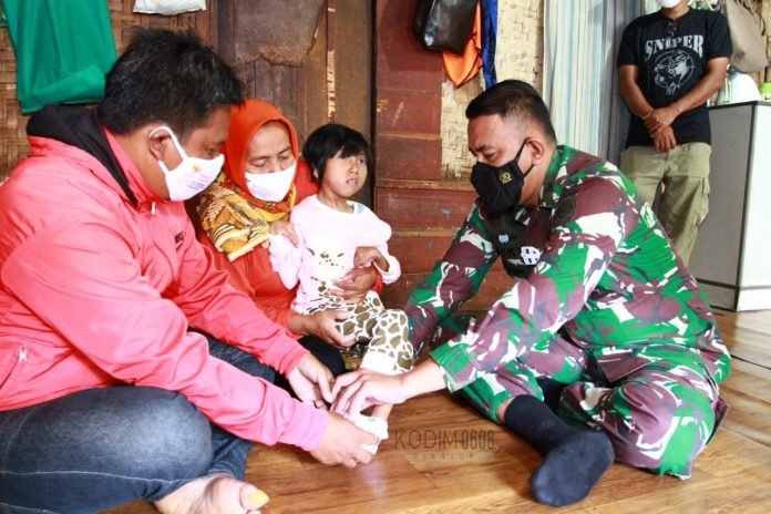 Dandim 0608/Cianjur, Letkol Kav Ricky Arinuryadi, S.H., M.M yang datang bersama ajudannya, menengok Siti panggilan sehari harinya, anak dari pasangan Leni, 26 dan Asep, 32, yang kini tinggal bersama kakek dan neneknya Dedi Yohana Putra, 52 dan Anon Saribanon, 49, yang tinggal di Kampung Babakan Pabrik, RT 05/02, Desa Sukajadi, Kecamatan Campaka, tengah sakit terkena Virus Sinterum akibat terjatuh.