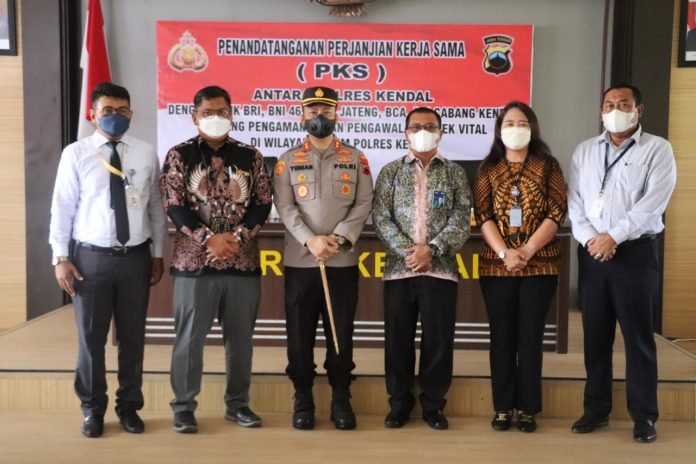 Penandatanganan kontrak kerja sama antara Polres Kendal dengan sektor Perbankan yang menggunakan jasa Pam Obvit diantaranya, Bank BRI cabang Kendal, Bank BSI Cabang Kendal, Bank Jateng Cabang Kendal, Bank BNI Cabang Kendal dan Bank BCA Cabang Kendal.