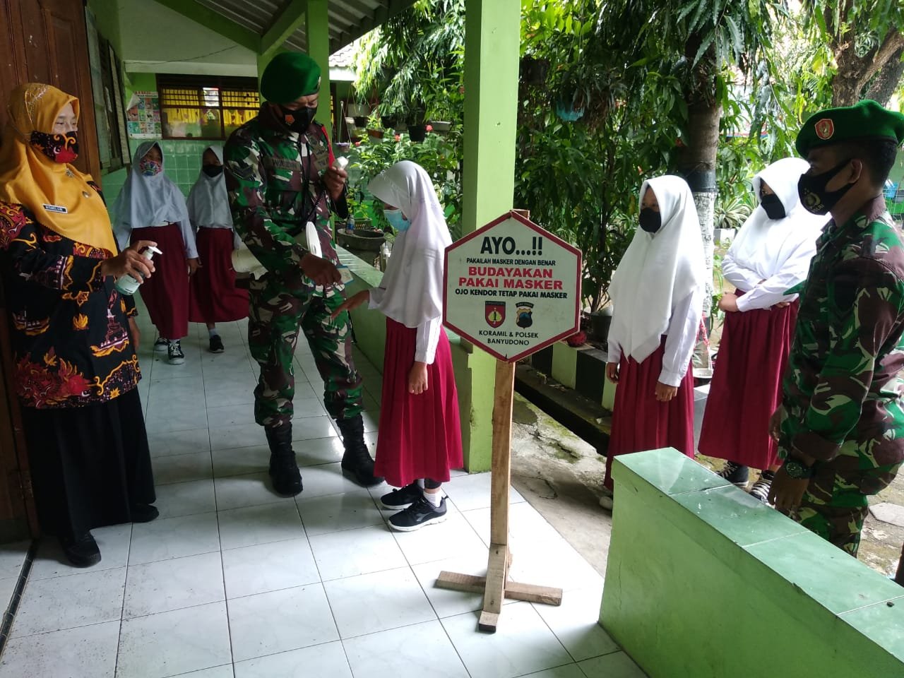 Kegiatan sosialisasi dan edukasi masalah protokol disiplin kesehatan kepada penyelenggara sekolah murid SD, yang di laksanakan Sertu M Wazin sebagai bentuk dan tanggung jawab sebagai Babinsa di wilayah binaan.