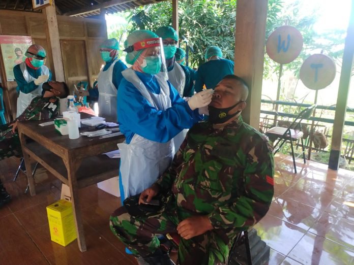 ACTUALNEWS.ID, Sukoharjo – (15/09/21) Menyikapi belum usainya Pandemi Covid 19 di wilayah Kabupaten Sukoharjo, Satgas TMMD Reguler Kodim 0726/Sukoharjo di desa Majasto yang baru tiba menjalani serangkaian test Swab sebelum secara resmi mulai melaksanakan tugasnya.