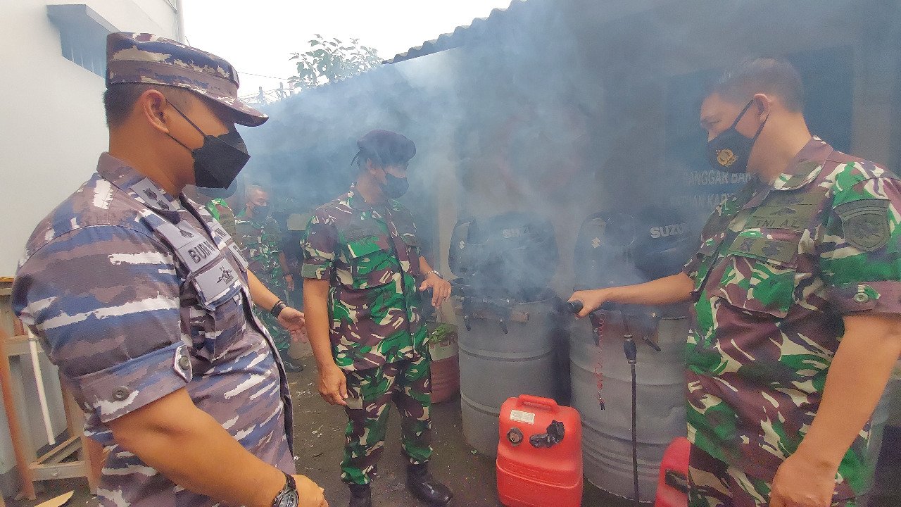 Dalam kesempatan tersebut Pgs. Danlanal Bandung Letkol Laut (P) Budi Purnamajaya, S.H., didampingi Pasintel, Pasops, dan Dandenpomal Lanal Bandung melihat langsung dan melakukan pemeriksaan alat apung berupa skoci karet dan motor temple serta perlengkapan lainnya.