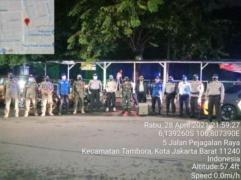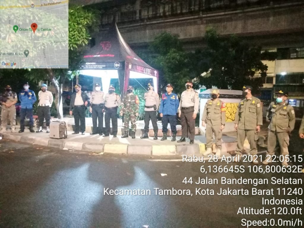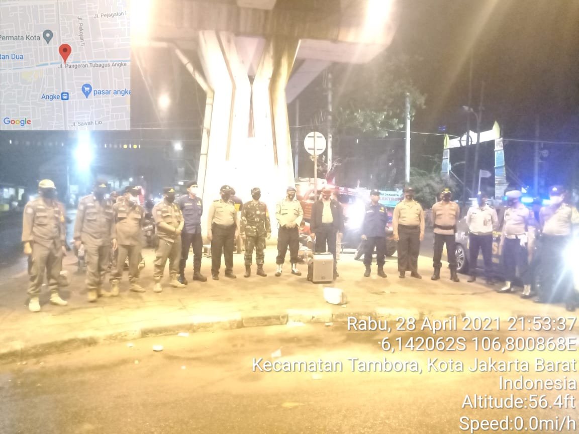 21 personil gabungan dari Koramil 02/TB Sertu Sadikin Yp, Mitra jaya, Polsek Tambora, Satpol PP, Damkar dan Dishub dengan sasaran kerumunan warga