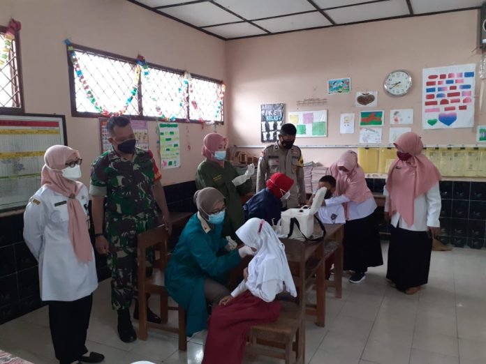 ACTUALNEWS.ID, Boyolali – Babinsa Jenengan Koramil 09/Sawit Kodim 0724/Boyolali Serda Untung bersama Bhabinkamtibmas Polsek Sawit Bripka Mujiono melaksanakan pemantauan kegiatan Vaksinasi anak usia 6-11 tahun yang bertempat di SDN 3 Jenengan Desa Jenengan Kecamatan Sawit Kabupaten Boyolali . Kamis ( 13/01/2022)
