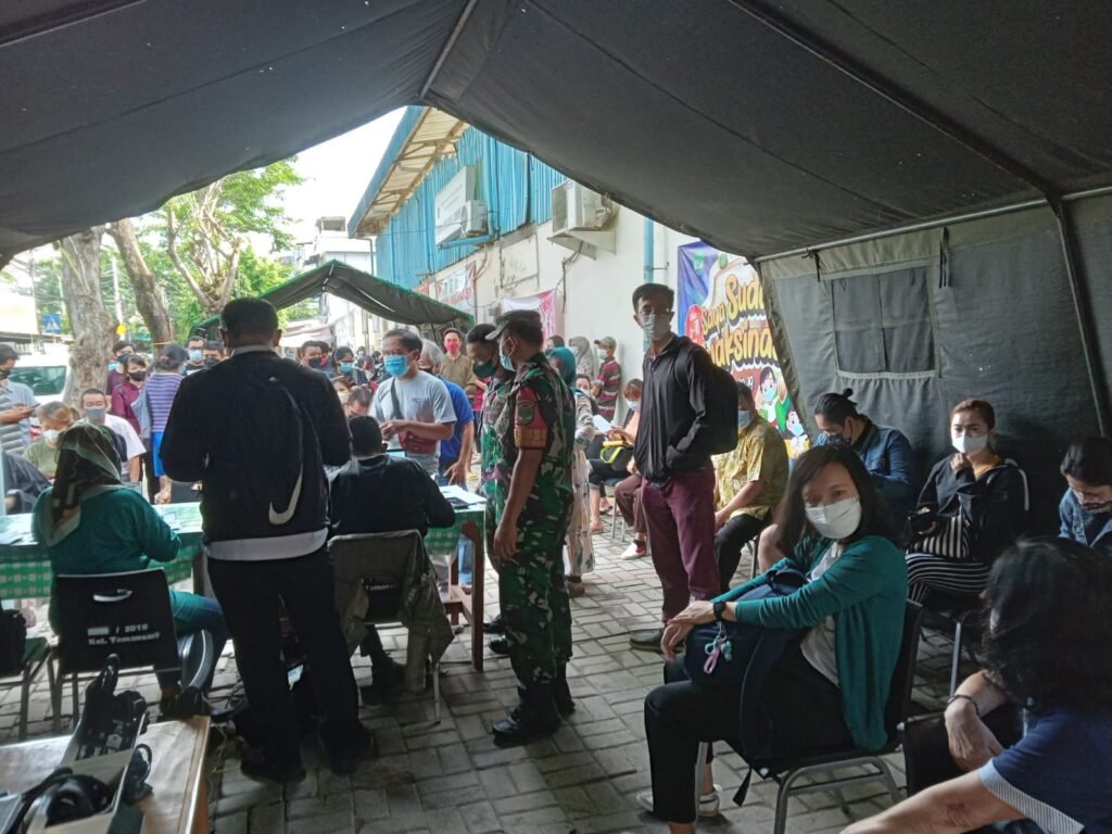 ACTUALNEWS.ID, Jakarta – Kodim 0503/JB, Koramil 01/TS – Masyarakat serbu Serbuan Vaksinasi Kodim 0503 Jakarta barat yang di laksanakan Korami 01 Tamansari untuk melakukan vaksin guna mendukung progam pemerintah dalam percepatan penanganan covid-19 dan pemulihan kesehatan warga masyarakat DKI Jakarta.