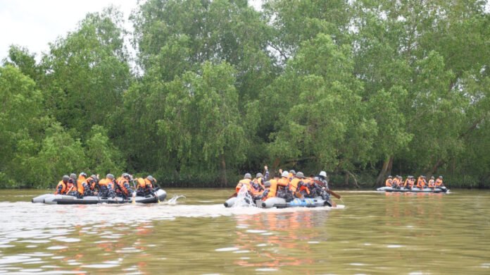 ACTUALNEWS.ID, Tanjung Balai,- Dalam rangka memelihara dan meningkatkan kemampuan fisik, prajurit Lanal Tanjung Balai Asahan melaksanakan Latihan Lintas Medan dan mendayung perahu karet di Perairan Kuala Bagan Asahan, dimana setiap tim dipimpin 1 (satu) orang Perwira, Selasa (20/09/2022).
