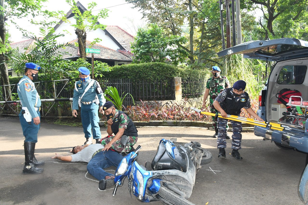 Atasi Kecelakaan Lalu Lintas, Prajurit Denpom Lanal Bandung Laksanakan Pelatihan Olah TKP