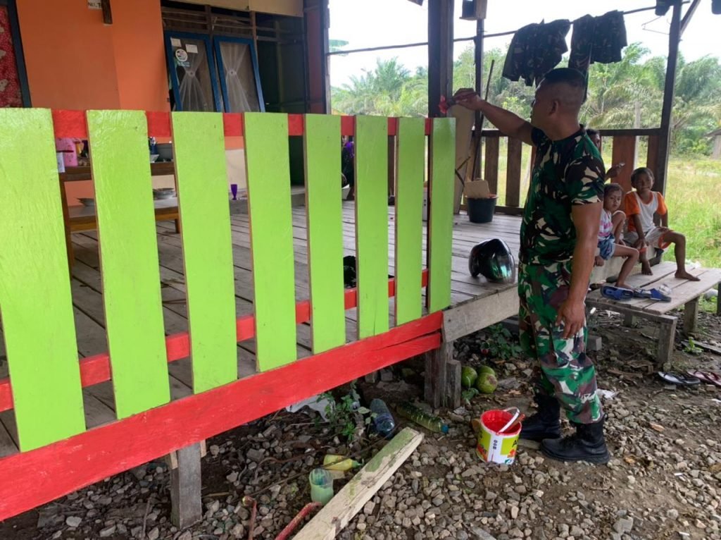 “Rumah ibu Sri Astuti warnanya sudah pudar sehingga dengan cepat Danpos Berjongkong membantu cat dan melakukan pengecatan rumah ibu Sri sehingga terlihat bersih dan rapih kembali,” ujar Dansatgas.