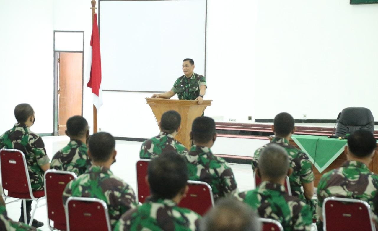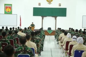 ACTUALNEWS.ID, Banyumas – Mengawali pelaksanaan tugas di Tahun Baru 2022, Komandan Korem 071/Wijayakusuma Kolonel Inf Dwi Lagan Safrudin, S.I.P., berikan Jam Komandan kepada segenap prajurit dan PNS Makorem 071/Wijayakusuma, Senin (3/1/2022) di Gedung Pertemuan A.Yani Makorem 071/Wijayakusuma, Sokaraja, Banyumas.
